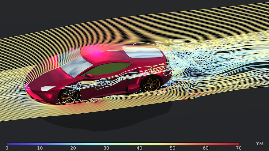 A model of the areodynamics of a car. Studying the aerodynamics of a car using a COMSOL model.